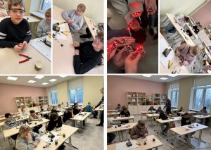4.-6. klašu skolēniem bija iespēja piedalīties norisē “Elektronika un lodēšana. Vabolītes 4.-6.klasei”. Bērni iepazina shēmas uzbūvi, dažādus elektroniskos komponentus, izmēģināja strādāt ar lodāmuru. Skolēni veidoja savu “vabolīti” – nelielu robotu, kurai tumsā spīd LED acis.
